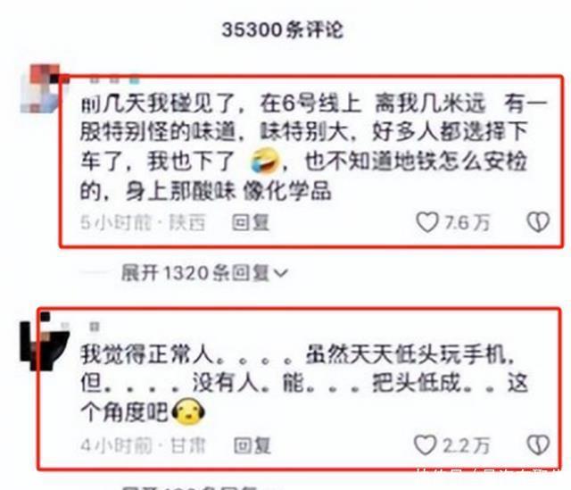 其次是更多知情东说念主发声:       “几天前在6号线上碰到了,离了几米远就闻到一股格外怪的滋味,那时很多东说念主齐下车了,身上这样重的酸味不知说念是怎样通过安检的”