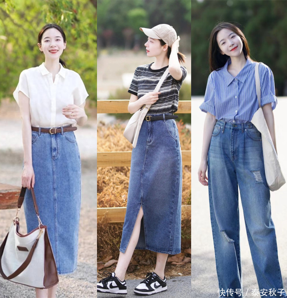 白色短袖和黑色牛仔裤是非常经典的搭配组合,这种搭配常常被人们认为是永不过时的。